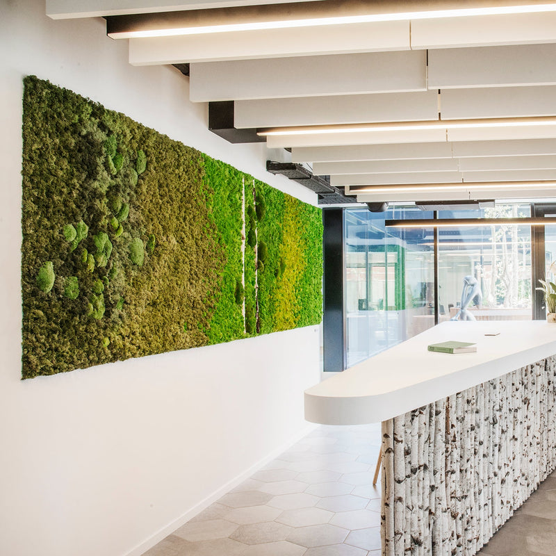 A moss wall is a creative way to introduce colour and texture to any workspace. Not only are they maintenance free but they’re a great way to introduce tranquillity and ambiance to a space but also a fantastic way to incorporate a company's logo into an eye-catching display.
